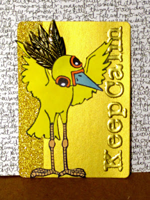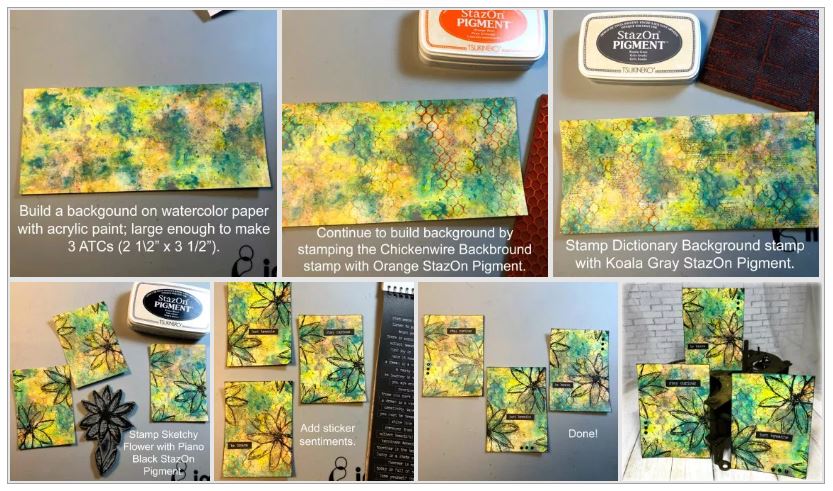 For this ATC, I used the ATC Grunge Tree stamp and the Witch stamp, both from Lost Coast Designs, and the Witches Go Riding clear stamp from Carmen's Veranda.